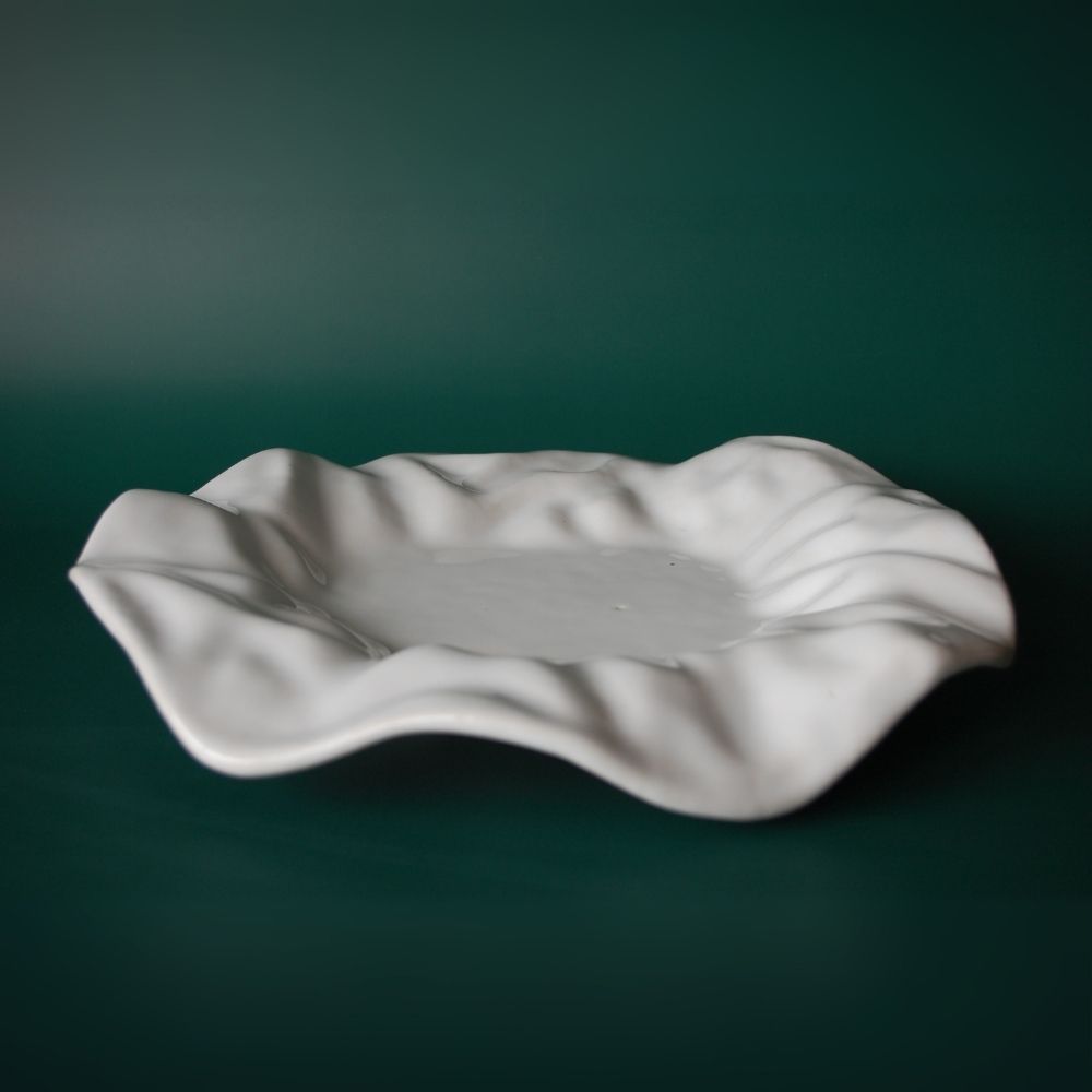 Minimal yet eye-catching, Ivory Flow is an abstract ceramic platter with a smooth white glaze that adds quiet elegance to any table. Ideal for serving starters, salads, or even as a styling piece, this platter brings both function and form to everyday dining and special occasions.