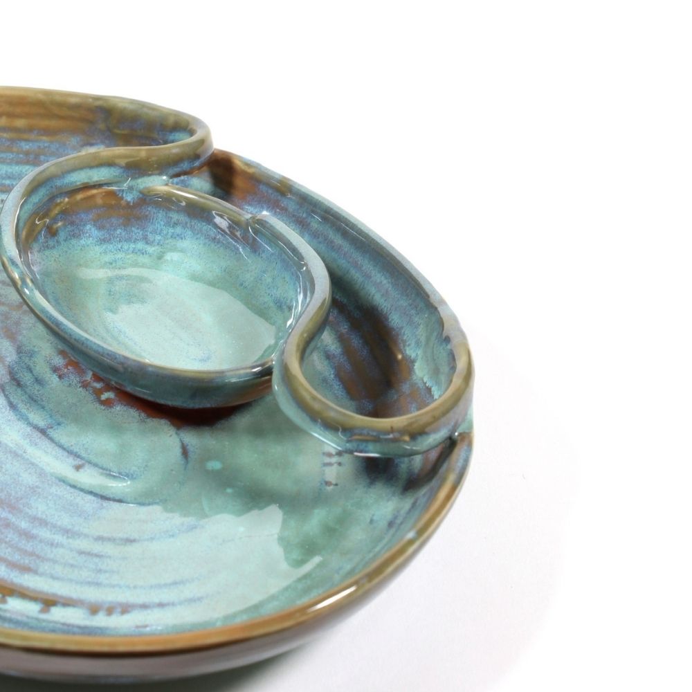 Thoughtfully designed for both everyday use and effortless hosting, the Ocean Trail platter features a soft sea green glaze and an elegant oval shape. With a generously sized base and a built-in dip bowl, it’s ideal for serving chips and salsa, crackers with cheese, or fresh cut fruits with a dip.